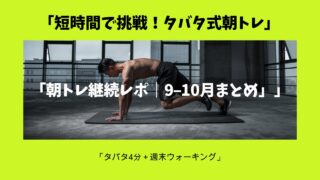 朝トレ記録 【朝トレ継続レポ】タバタ式4分+週末ウォーキング|9〜10月の結果まとめ 平日の朝タバタ4分と週末ウォーキングを2か月継続。9月〜10月の体組成推移と、停滞期の向き合い方、見た目や体調の変化を正直にまとめました。 2025.10.29 朝トレ記録