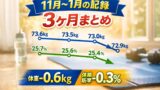 ですが、1月に入って完璧を目指さず、できる日だけ再開したところ、体重・体脂肪率ともに再び下がり始めました。